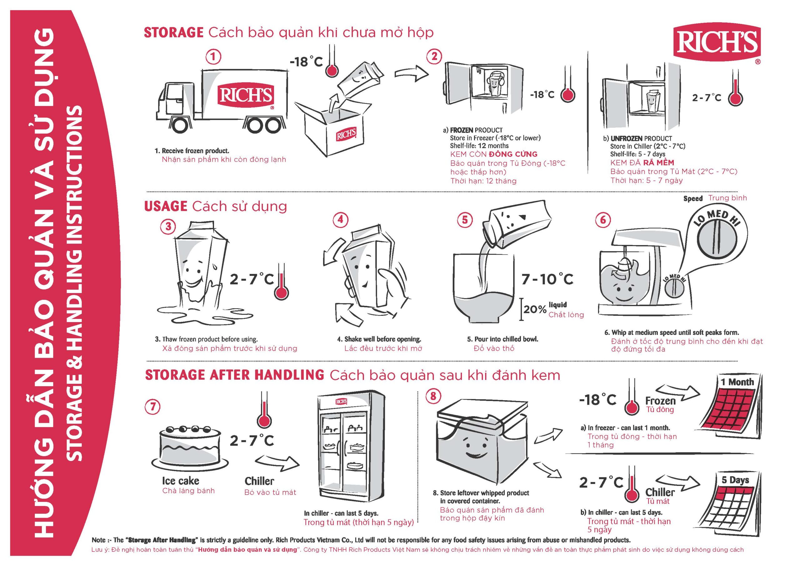 HƯỚNG DẪN BẢO QUẢN & SỬ DỤNG SẢN PHẨM KEM TRANG TRÍ, PHA CHẾ, VÀ NẤU ĂN