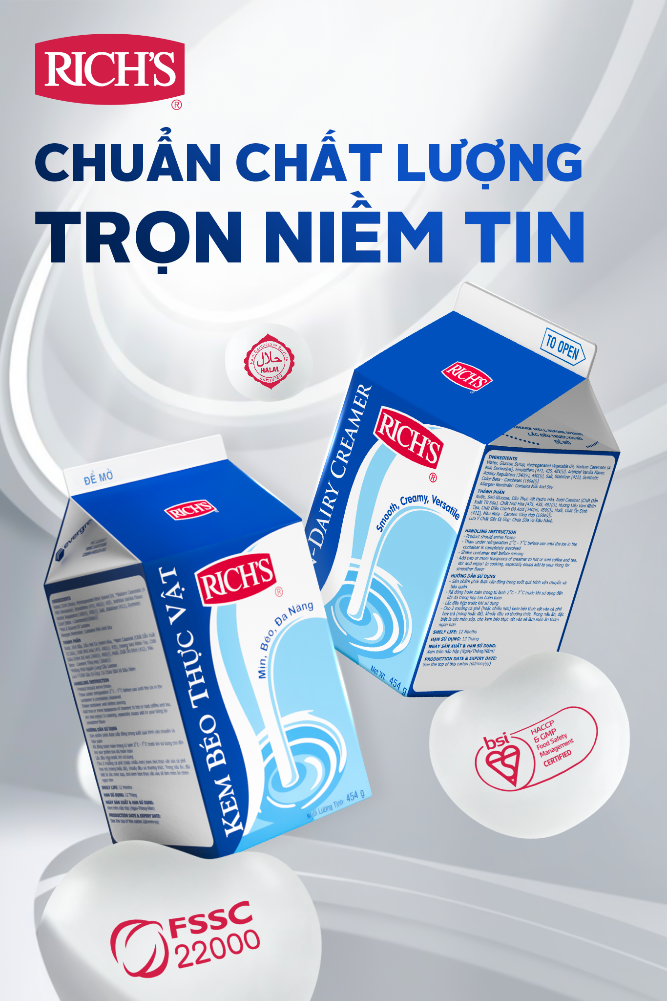 Kem Béo Thực Vật Rich’s khẳng định chất lượng an toàn cho người tiêu dùng