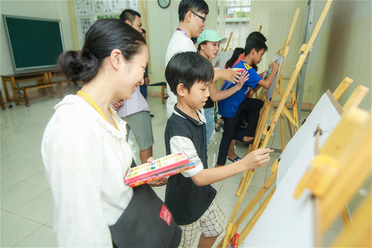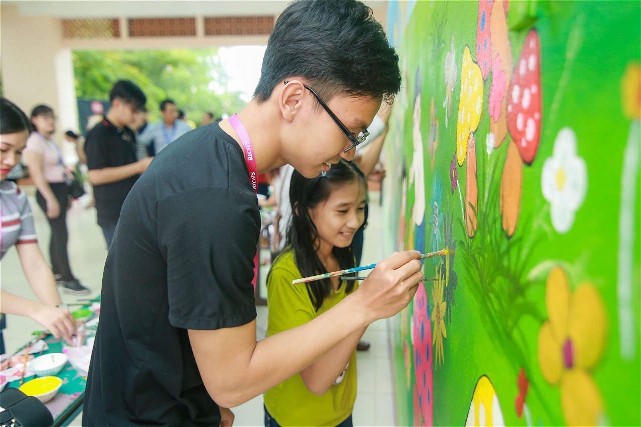 Đoàn chúng tôi được chia thành 7 nhóm: Nhóm 1 chịu trách nhiệm trồng một vườn rau sạch cho các bé; nhóm 2 vẽ tranh tường kỷ niệm cho khu vực sân chơi thêm vui tươi; nhóm 3 treo 10 bộ rèm mới cho các phòng trong ký túc xá; nhóm 4 dạy các bé làm bánh cupcakes; nhóm 5 trang trí phòng bếp bánh; nhóm 6 dạy các bé vẽ tranh và chơi tranh cát; và cuối cùng là nhóm 7 trồng 15 cây ăn trái trong vườn.