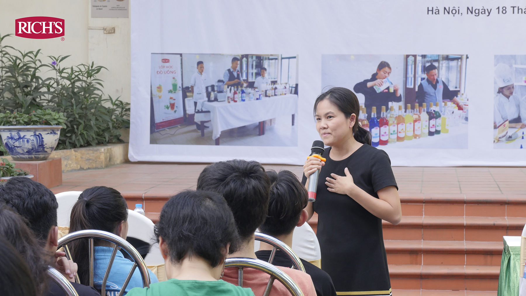 <Ảnh 2: Chị Thái Ái Kim – Giám đốc Nhân sự Rich Products Vietnam chia sẻ về cơ hội nghề nghiệp trong ngành bánh, pha chế>