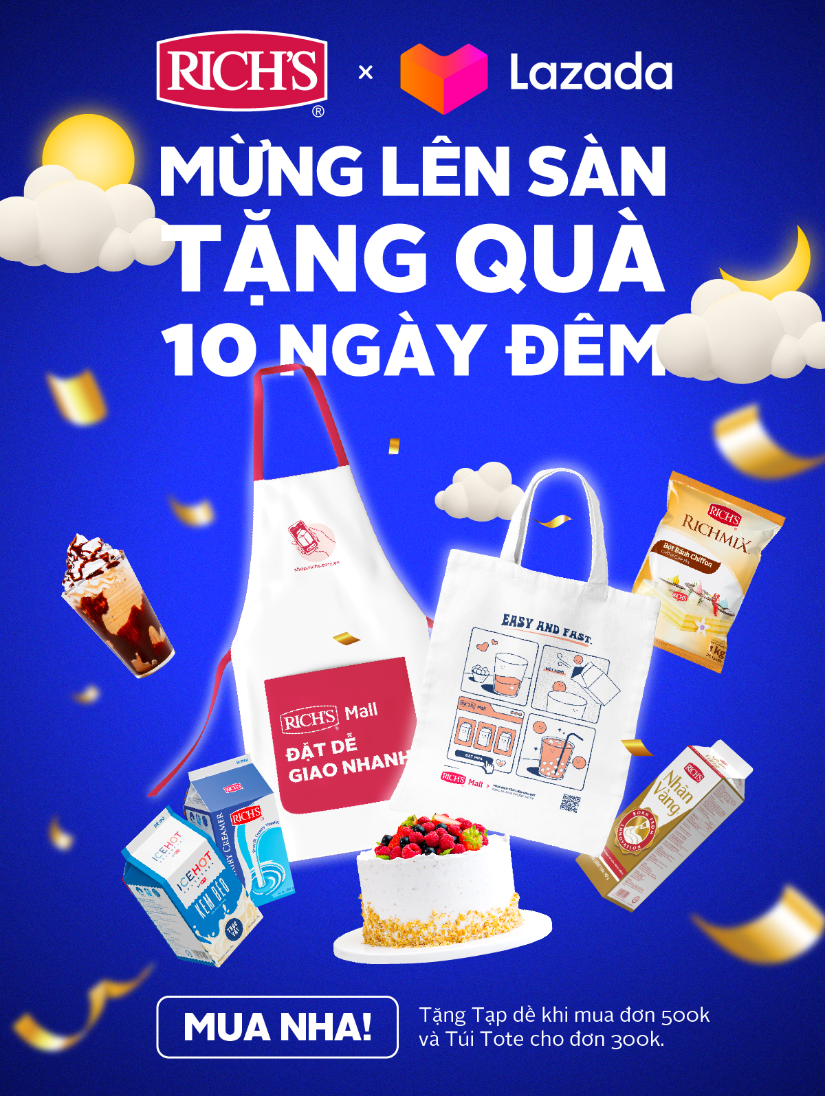 Nhân dịp khai trương sàn Lazada, Rich’s tung rất nhiều ưu đãi hấp dẫn như deal giảm giá lên đến 15%, quà tặng túi tote, tạp dề phiên bản giới hạn. Click tại đây để khám phá và săn quà ngay nhé!