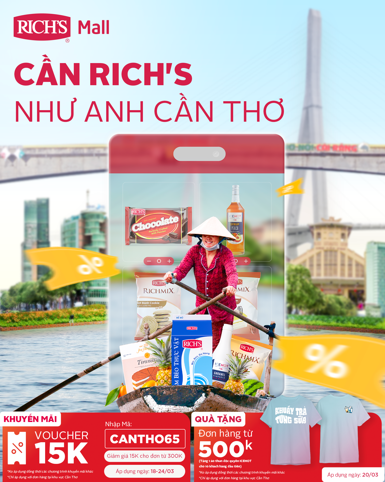 Chiến lược công nghệ hóa dịch vụ của Rich’s dựa trên tầm nhìn chung là cung cấp các giải pháp FnB đẳng cấp thế giới cho mọi hộ gia đình Việt. Từ những con phố sầm uất của Thành phố Hồ Chí Minh, Hà Nội, cho đến những bãi biển yên tĩnh của Đà Nẵng, chúng tôi đã vượt qua rất nhiều thử thách. Hiện tại, Rich's Mall Cần Thơ là cột mốc hoàn thiện đáng nhớ cho dịch vụ thương mại điện tử của Rich’s Việt Nam. Nền tảng của chúng tôi cung cấp thứ các nguyên liệu làm bánh và pha chế tiện lợi và thơm ngon, đáp ứng thị hiếu và sở thích đa dạng của những khách hàng sành điệu.