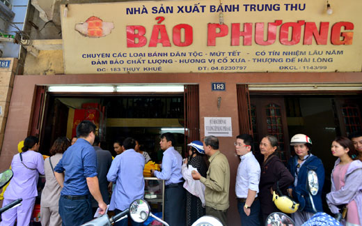 Cứ đến mùa Trung Thu, trước cửa hiệu bánh Bảo Phương - Thụy Khuê lại tấp nập người mua xếp thành hàng dài. Ông Phạm Vi Bảo - chủ hiệu Bảo Phương nay đã ngoài 80 tuổi đã làm bánh trung thu từ năm 1948, sau đó thành lập ra tiệm Bảo Phương. Hàng chữ "Hương vị cổ xưa - Thượng đế hài lòng" in trên biển hiệu là dòng chữ ông tâm đắc nhất, bởi chữ tín trong kinh doanh là vô cùng quan trọng. Những chiếc bánh Trung Thu của Bảo Phương nổi bật bởi hương vị cổ truyền, giữ được hồn cốt của bánh truyền thống dù đã trải qua hơ 60 năm kể từ ngày mở tiệm. Tiệm cũng không chạy theo thị trường, làm hộp đẹp, bọc kín mà vẫn giữ giấy bóng kính trong, bao bì đơn giản để người mua nhìn thấy rõ chiếc bánh, chất lượng, màu sắc.