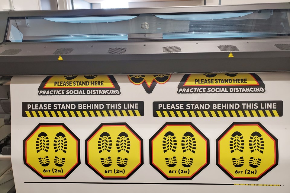 (Ảnh 5: Sử dụng những biển hiệu để hỗ trợ mọi người cùng giữ khoảng cách an toàn)