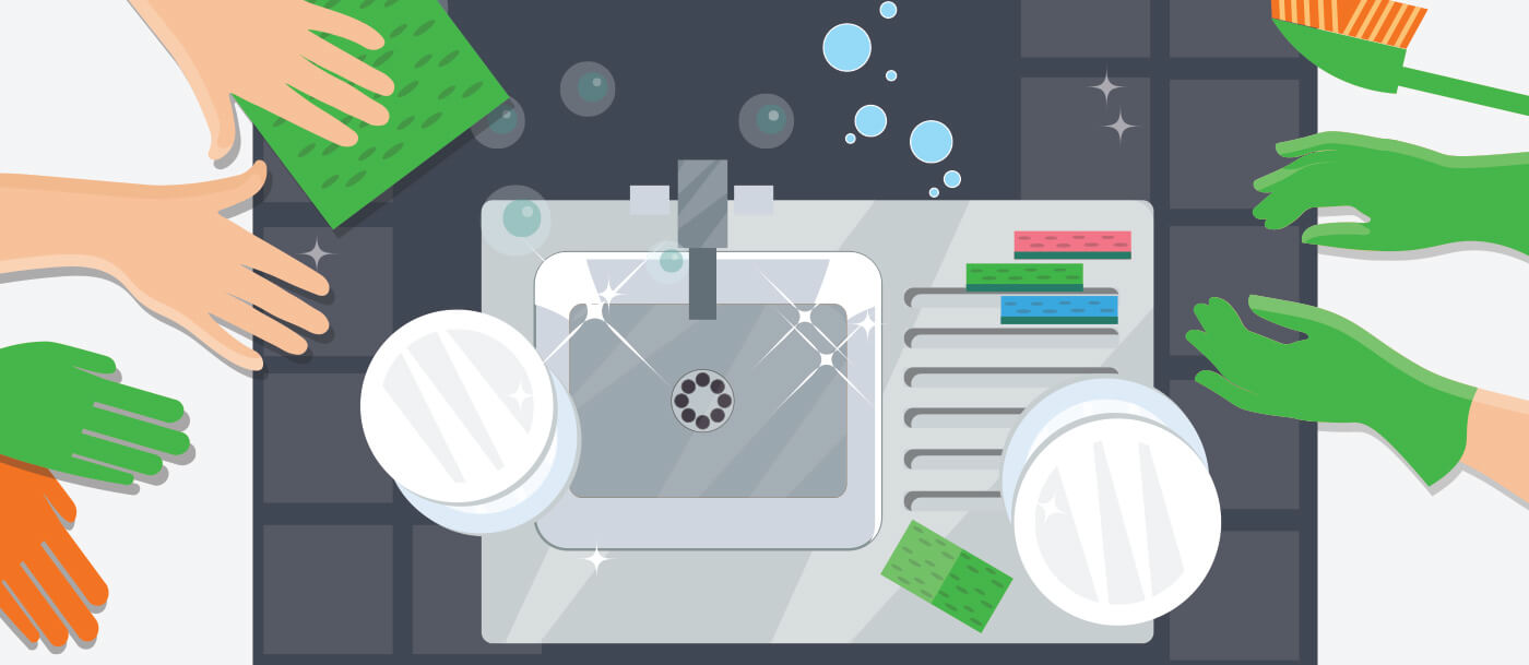 (Ảnh 2: Vệ sinh các dụng cụ trong bếp)